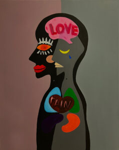 独自のシンボル「Us.」を軸に、人物像と抽象的なフォルムを融合させた画風を確立。