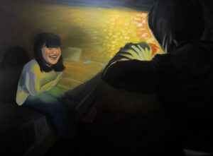 私はその境界が揺らぐ瞬間の面白さを、油絵の中にそっと留めています。
