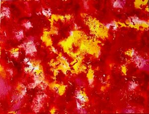 赤と黄が沸き立つように広がり、まるで生命の炎が脈打つように輝く一枚。