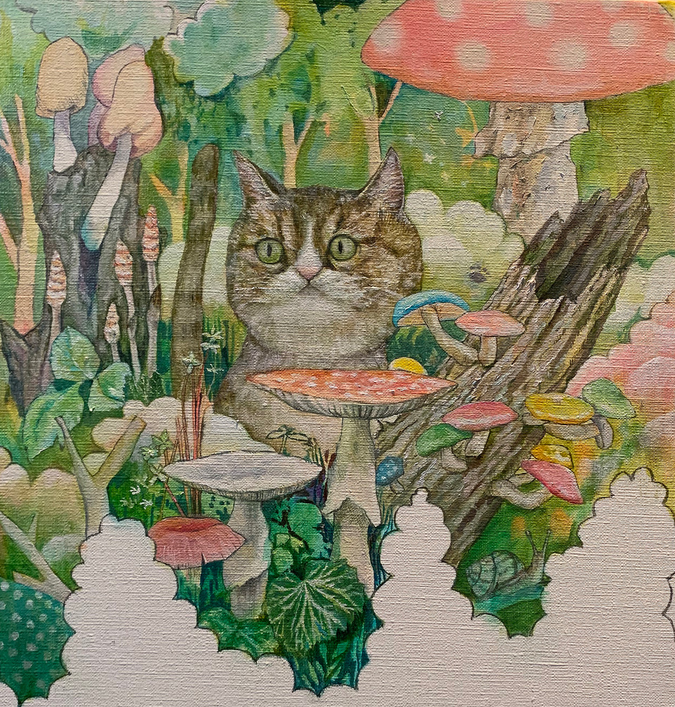 現代社会が暗くて未来が見えないのだから絵ぐらいは優しい気持ちで見ていたいという言葉を胸に、その時代を生きる人が見て安らげる絵を描くことも時代を描くという画家の生き方と根底で繋がっているのでは?と思い制作しております。