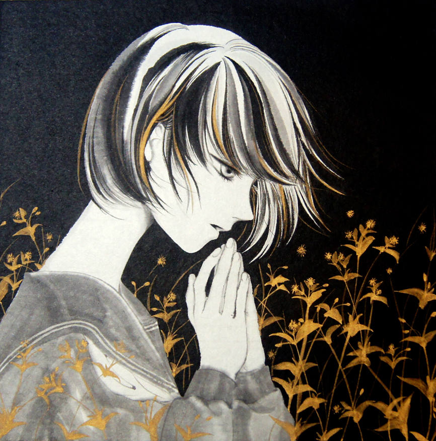 寺山修司の短歌から着想を得た、清らかさの中に闇深さも感じさせる、セーラー服の少女を描いた作品を展示いたします。 (短歌の会報誌「かばん」の表紙絵を飾らせてもらった作品でもあります) 墨と和紙が出会う一瞬の、修正の効かない交わりと流れの中に、言葉にできない想いを閉じ込めました。 1年ぶりの個展となります。どうぞご高覧ください。