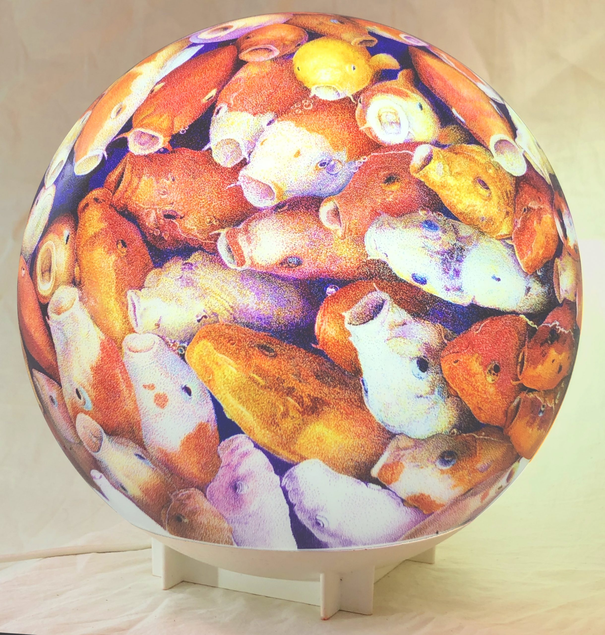 ひとつひとつ手作業で作られた手絞りの粒を独自の視点から擬人化し、それらを集積させて作品にしています。